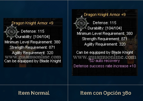 Las opciones 380 fueron agregadas apartir de la versión Season II estas opciones refuerza los items aparecidos en la Season I .