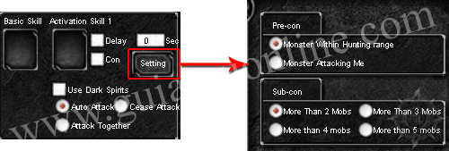 Monster Within Hunting Range: Al seleccionar esta casilla el personaje atacara con el skill 1 a todos los monstruos que esten dentro de su rango de ataque.