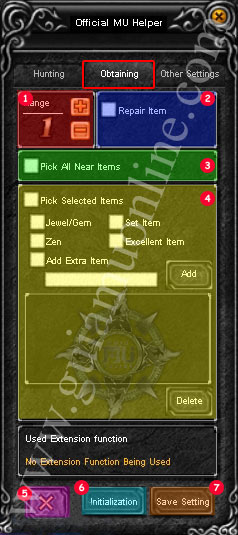 El Mu helper es una opciΓ³n que tiene como funcion principal el ataque, recogo de items automatico y es configurable de acuerdo al personaje que usas..